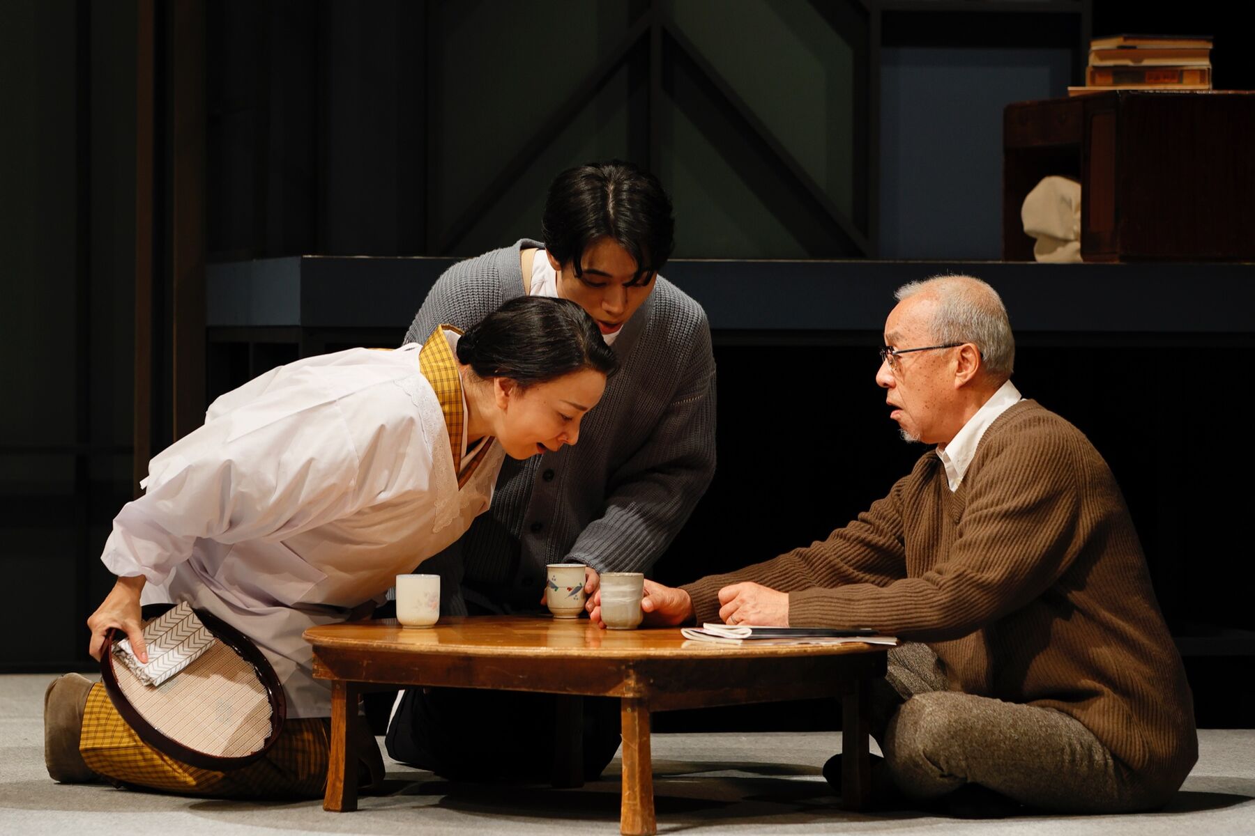 余談になりますが、先日、私のかっぽう着の後ろの紐がうまく結べず、もたもたしていましたら三津谷さんがさり気なく結んでくださって「ありがとう」といいますと「わーのかっちゃだから」とおっしゃってくださって。「かっちゃ」の役ではないのですがもうなんだか嬉しかったです。そんな優しい三津谷さんです(奥山)